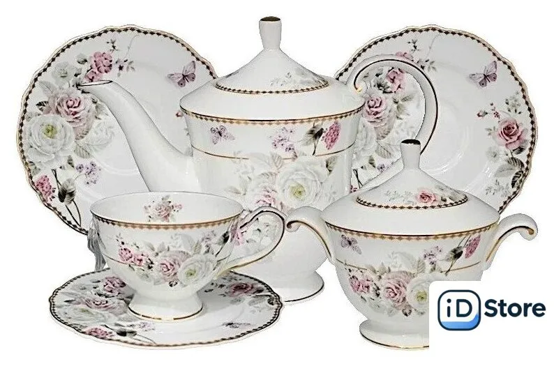 сервиз на 6 персон, для чая, фарфор, цвет: белый/розовый. Доставим по Минску в день заказа, при оформлении заявки до 14.00. Официальная гарантия.