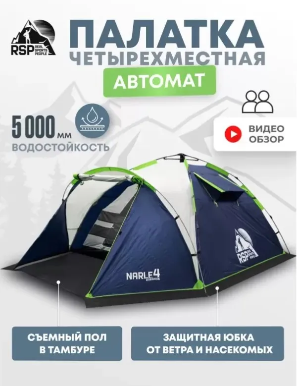 Палатка кемпинговая RSP Narle 4 с автоматическим каркасом (синий)