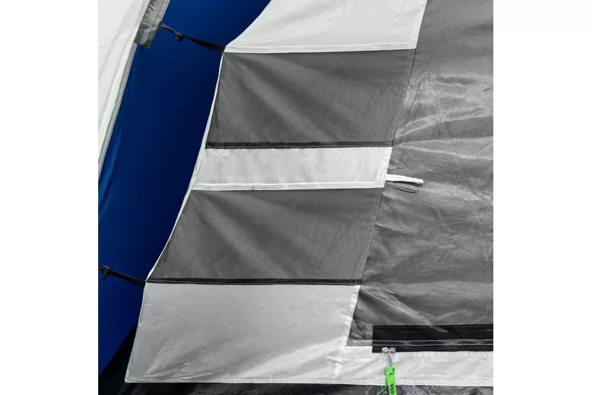 Двери и окна продублированы мелкой москитной сеткой для защиты от всех видов насекомых. Молнии оснащены тканевыми пуллерами салатового цвета для удобства использования и видимости в темноте.